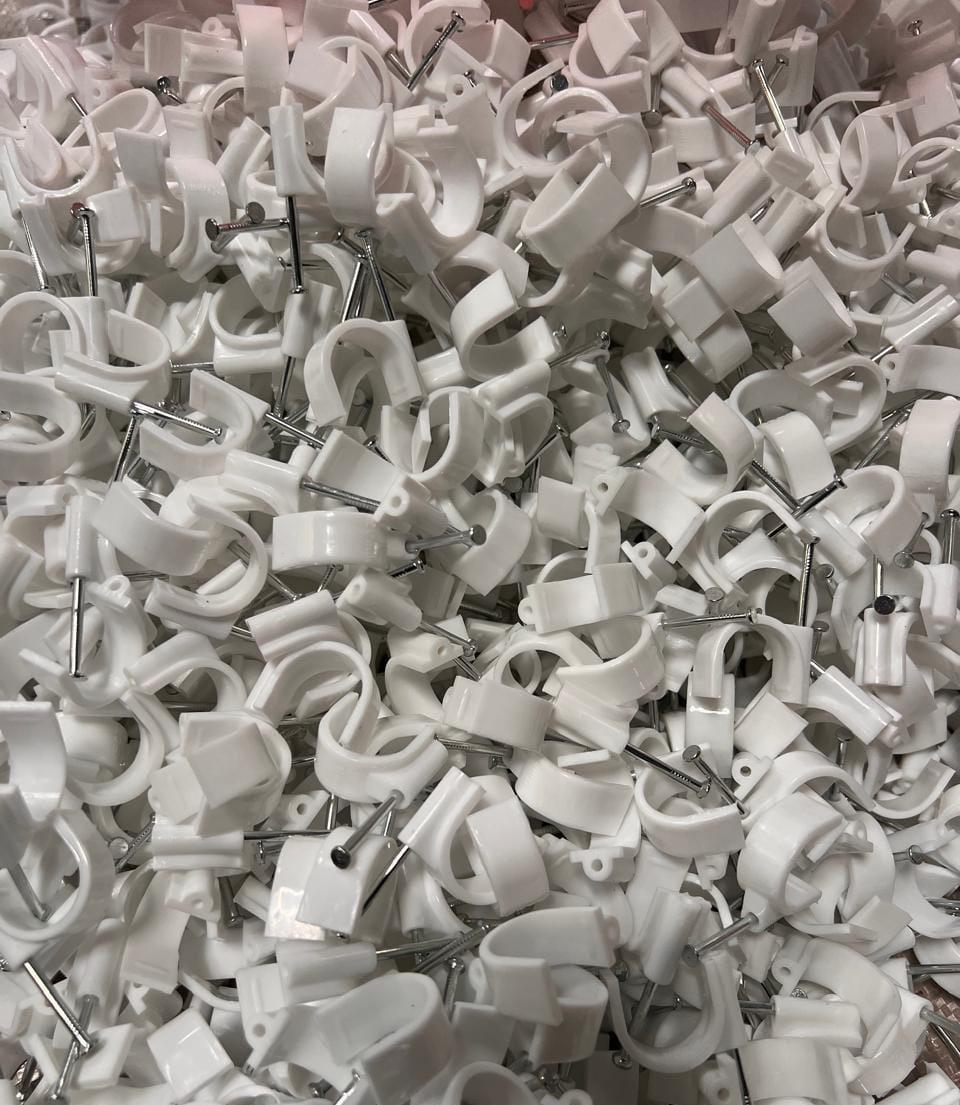 KPC Industries Nail Cable Clips are designed to provide a reliable, long-lasting solution for fixing electrical wires neatly along walls, ceilings, and surfaces. Manufactured using high-quality plastic with hardened steel nails, our clips ensure firm grip, easy installation, and a clean professional finish.